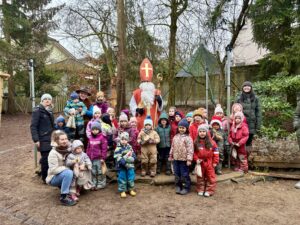 Von weitem wurde der Nikolaus durch die Querflötentöne und dem Gesang der Kinder in das Kinderhaus gelotst. Der Nikolaus hatte für jedes Kind gute Gaben in Form von Säckchen und persönliche Worten dabei.