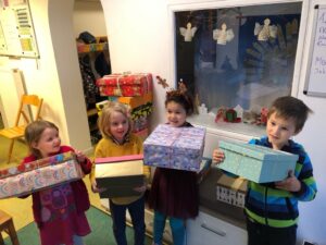 Die Kinder des Montessori Kinderhauses Passau packen Weihnachtspäckchen